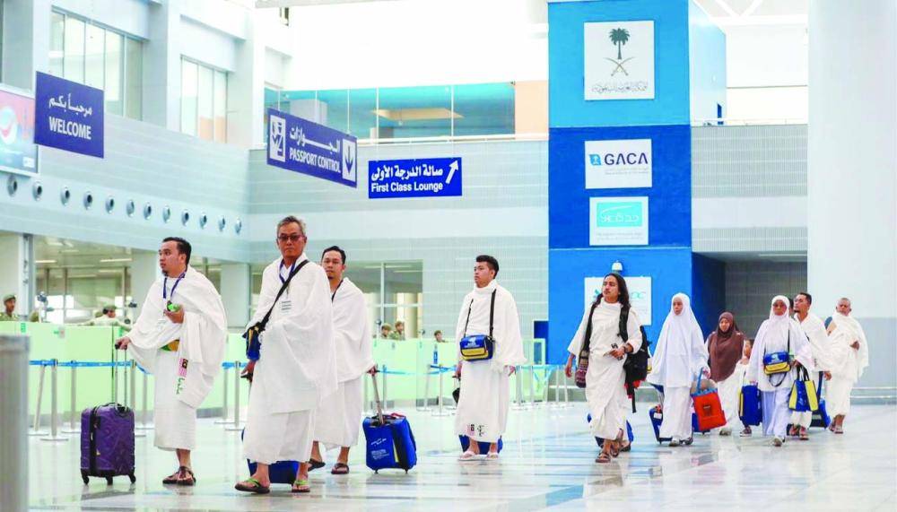 معتمرون عقب وصولهم إلى مطار الملك عبدالعزيز بجدة.
