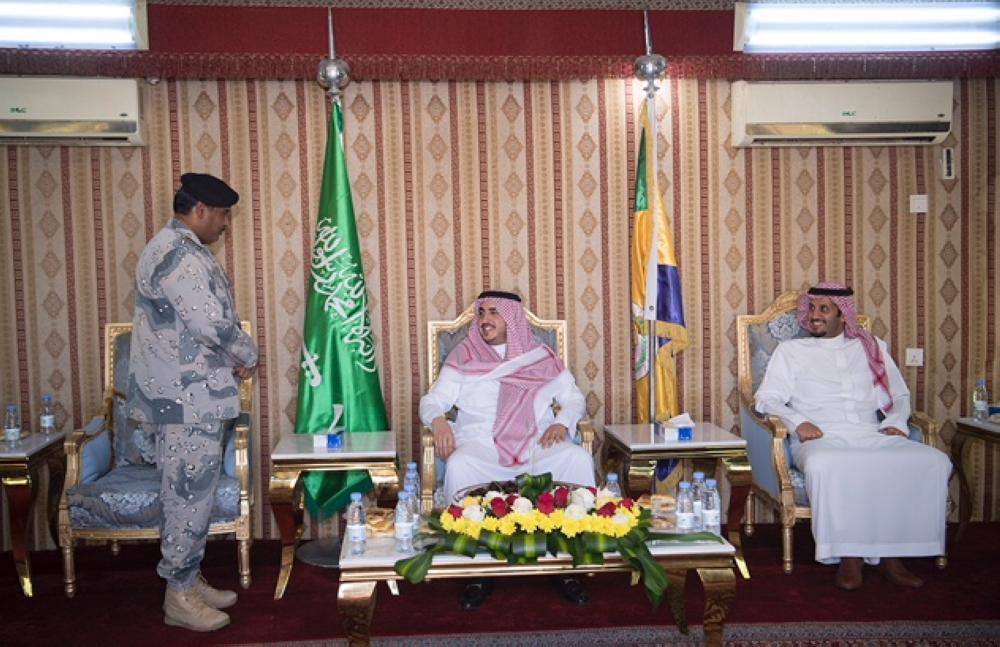 وفور وصول الأمير فيصل بن نواف، كان في استقباله قائد حرس الحدود بمنطقة الجوف اللواء خالد بن مياح الفقير، وضباط قيادة المنطقة، حيث أدى حرس الشرف السلام الملكي، بعدها استمع أمير المنطقة من اللواء الفقير إلى شرح عن طبيعة عمل أبنائه رجال حرس الحدود في الذود عن كل شبر من حدود بلادنا.