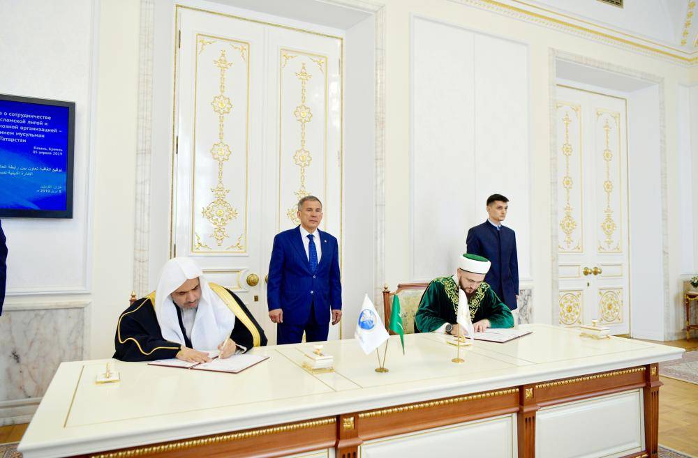 وعقب اللقاء شهد الرئيس مينيخانوف، توقيع اتفاق تعاون بين الرابطة ممثلة في أمينها العام، والمنظمة الدينية لمركزية الإدارة الدينية لمسلمي تتارستان ممثلة في مفتي الجمهورية كامل سميع الله بن إسكندر.