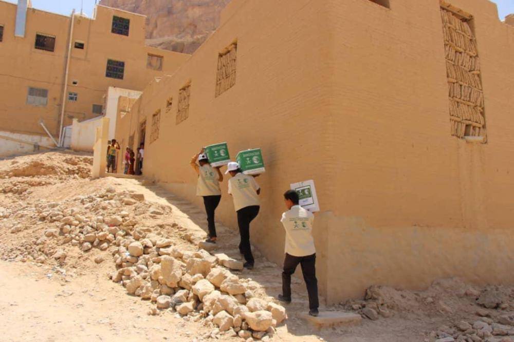 مركز الملك سلمان يوزع مساعدات غذائية على النازحين والمتضررين في سيئون بحضرموت