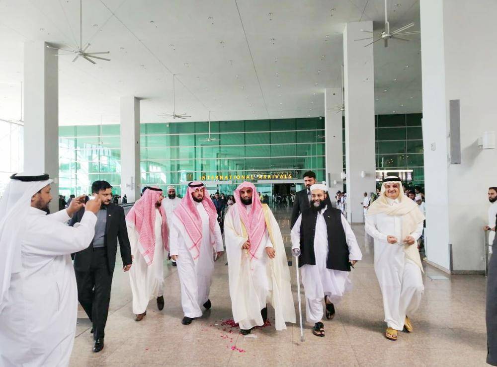 عبدالله الصامل، وعبدالله الجهني لدى وصولهم إلى إسلام آباد أمس. (واس)