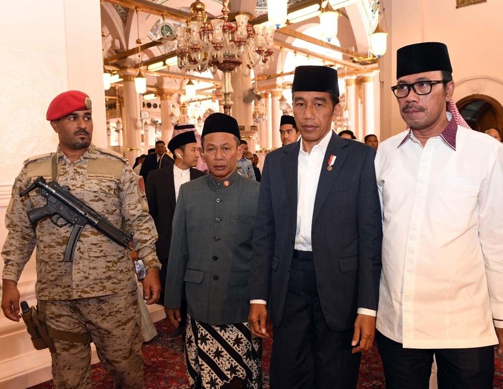 وزار الرئيس الإندونيسي جوكو ويدودو اليوم، المسجد النبوي بالمدينة المنورة للصلاة فيه، والتشرف بالسلام على الرسول المصطفى صلى الله عليه وسلم وصاحبيه رضوان الله عليهما.