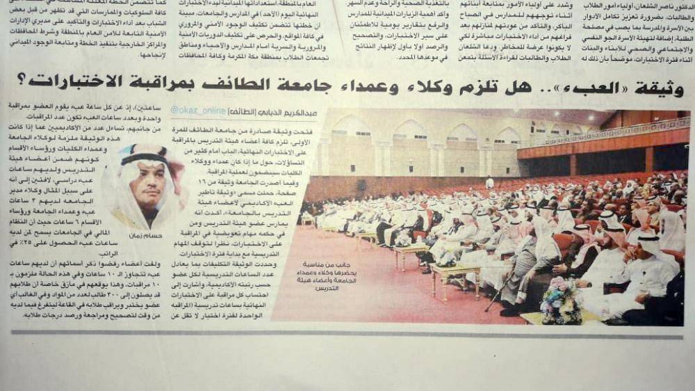 الطائف: «المراقبة» تتجاوز العمداء والوكلاء.. وأكاديميون: مخالفة لـ«وثيقة العبء»!