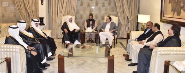 وكان في استقباله لدى وصوله عضو مجلس الشيوخ راجه ظفر الحق، وعضو مجلس الشيوخ دلاوار خان العضو المرافق، وسفير خادم الحرمين الشريفين لدى جمهورية باكستان نواف بن سعيد المالكي وعدد من أعضاء مجلس الشيوخ بجمهورية باكستان الإسلامية.