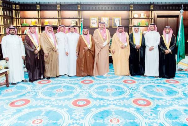 الأمير حسام بن سعود مستقبلا محافظ القرى خالد العبلان، ورئيس وأعضاء المجلس البلدي.
