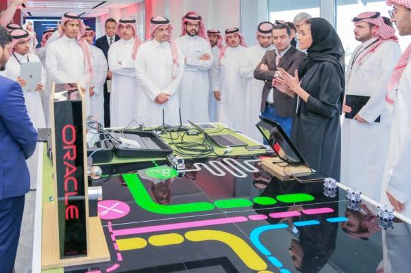 العوهلي مستمعا إلى شرح عن مركز الابتكار الجديد بالرياض.