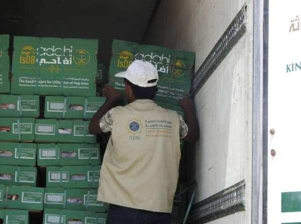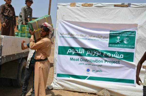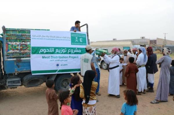 مركز الملك سلمان يوزع 20 ألف كرتون لحوم في المهرة ومأرب