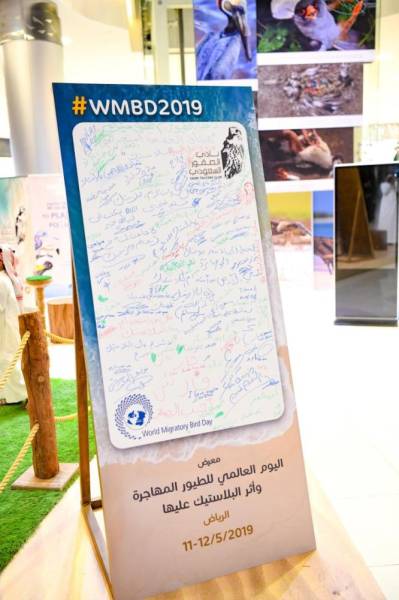 بعبارات التحفيز والإلتزام وثق زوار معرض «اليوم العالمي للطيور المهاجرة وأثر البلاستيك عليها» مشاركاتهم وحضورهم في ميثاق الحد من استخدام البلاستيك والمحافظة على البيئة بالتوقيع على اللوحة المخصصة لذلك.