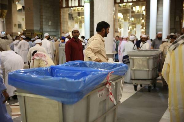 وأوضح مدير إدارة التطهير والسجاد خالد بن معلث الرحيلي أن مجموع ما يتم رفعه من النفايات نحو 93 طن يومياً، حيث وفرت الإدارة 66 عربة لجمع نفايات سفر الإفطار داخل الحرم، و83 حاوية للنفايات داخل الحرم، كما وفرت الإدارة 38 عربة و120 حاوية لجمع نفايات سفر الإفطار بساحات المسجد النبوي، مبيناً أنه يوجد 6 سيارات لحفظ النعمة.