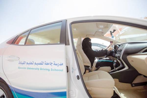 متدربة في مدرسة تعليم القيادة بجامعة القصيم.