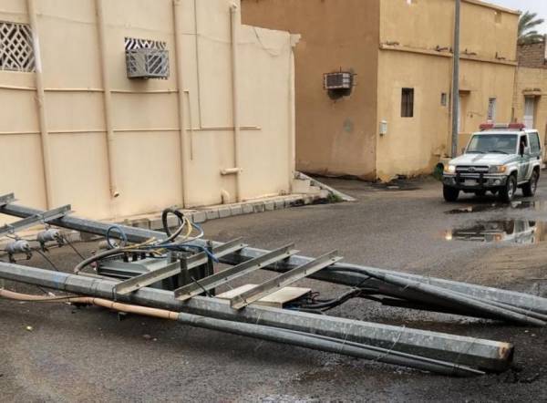 أمطار وعواصف تُسقط أعمدة الكهرباء في الخرمة