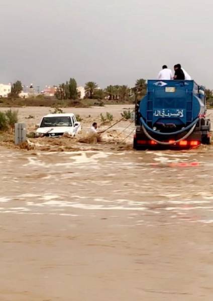 سائق صهريج يُنقذ أشخاصاً احتجزتهم سيول وادي كلاخ في الطائف
