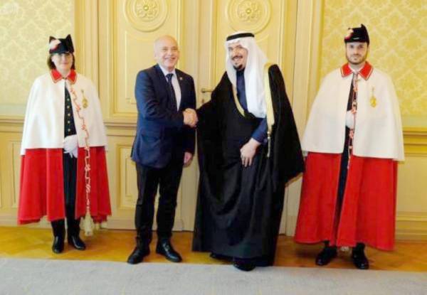 منصور بن ناصر يسلم أوراق اعتماده سفيراً للمملكة بسويسرا