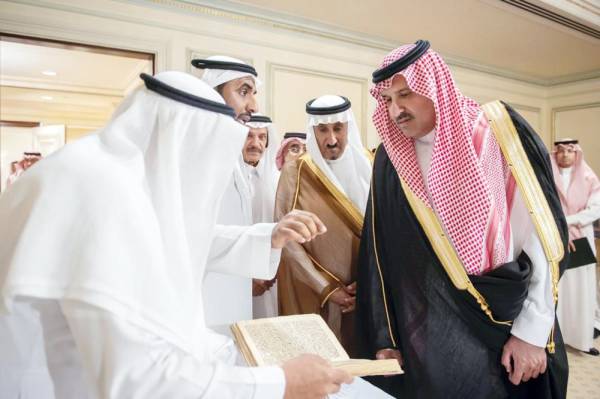 أمير المدينة خلال تدشينه مشروع توثيق تاريخ المصحف الشريف من التدوين إلى الطباعة.