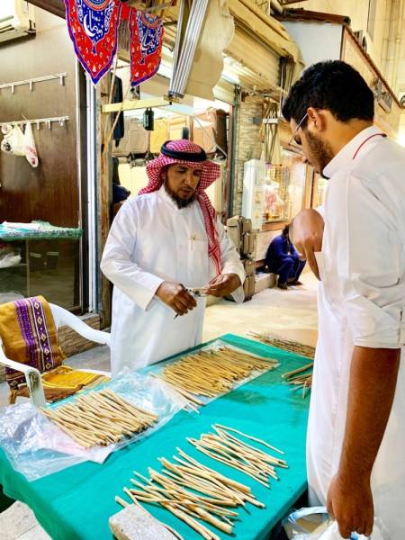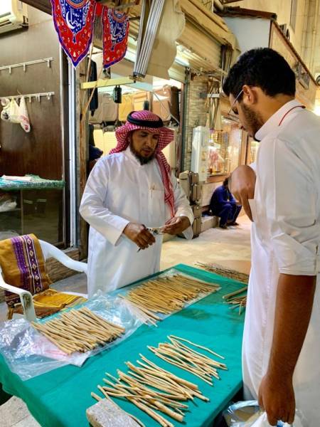 فيما تشهد بسطات بيع السواك خلال شهر رمضان المبارك في محافظة الطائف وبعض الأسواق الشعبية إقبالاً ملحوظاً وطلباً متزايداً اتباعاً للسنة النبوية في استخدامه، وينتشر الكثير من باعة السواك في هذا الشهر بالذات، ويحرصون على أخذ مواقع مزدحمة أمام أبواب المساجد خلال الصلوات، كذلك في الأسواق والمولات الكبيرة، ويجعلون من هذه المهنة دخلاً مادياً يوفر لهم لقمة العيش. وأوضح أحد أقدم باعة المساويك في منطقة البلد بتاريخية الطائف صالح المتعاني في تجربته حول تجارة السواك والذي أمضى فيها أكثر من 23 عاماً ولازال يمارسها قائلاً: بدأت فكرة ممارسة بيع السواك من حبي له وبعد تقاعدي من عملي العسكري قدم لي النصيحة أحد أقاربي للمتاجرة بالسواك، وأصبحت مهنة يرثها أبنائي تحت إشرافي بعد أن استطاع أن يمارس تجارته بالنظام بدلاً من افتراش الأرصفة والبسطات العشوائية.