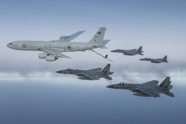 حلقت طائرات القوات الجوية الملكية السعودية والقوات الجوية الأمريكية من نوع (ف-15سي) في تشكيل مشترك على منطقة الخليج العربي، تساندها طائرات تزود بالوقود جواً تابعة للقوتين.