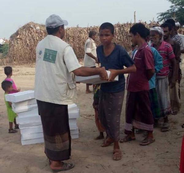 مركز الملك سلمان يوزع 5890 كرتون تمور وسلة غذائية في تعز وأبين وسقطرى