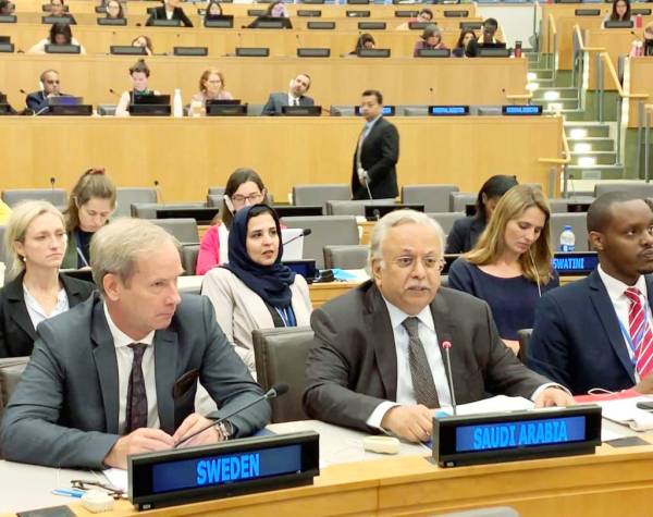 المعلمي ملقيا كلمة المملكة في الأمم المتحدة.
