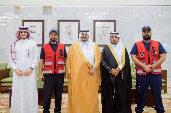 دشَّن أمير منطقة الرياض بالنيابة الأمير محمد بن عبدالرحمن بن عبدالعزيز، في مكتبه بقصر الحكم اليوم (الأربعاء)، مركزي إسعاف حي الخليج وحي النهضة، خلال استقباله مدير عام فرع هيئة الهلال الأحمر السعودي بمنطقة الرياض الدكتور راشد بن حامد القحطاني.