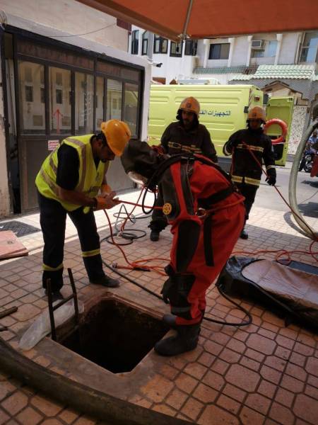باشرت فرق الإنقاذ بالادارة العامة بالدفاع المدني بمحافظة جدة، ‏حادث غرق شخص في خزان الصرف الصحي بوسط المحافظة.
