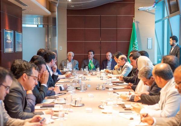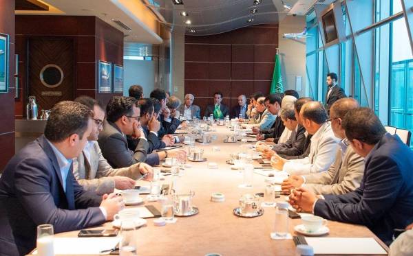 خلال لقاء القصبي والشبانة والجبير بالوفد الإعلامي المرافق لولي العهد
