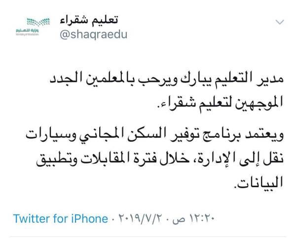 «التعليم»: توفير السكن والمواصلات للمعلمين والمعلمات الجدد