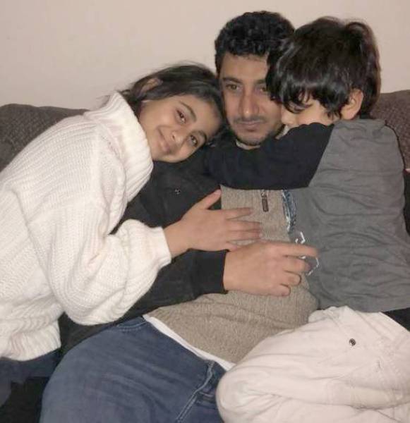 قاسم عداوي مع أبنائه قبل اختفائه.