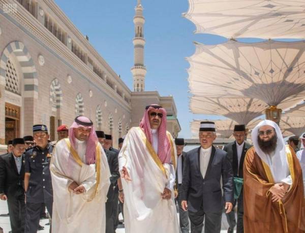 زار السلطان عبدالله بن السلطان أحمد شاه ملك ماليزيا اليوم (الجمعة), المسجد النبوي بالمدينة المنورة, حيث أدى الصلاة فيه وتشرف بالسلام على الرسول المصطفى - صل الله عليه وسلم - وصاحبيّه - رضوان الله عليهما -.