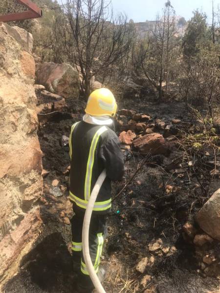 وذكر المتحدث الرسمي للدفاع المدني بمنطقة عسير العميد محمد عبدالرحيم العاصمي، أن الفرق استخدمت الآليات لإخماد الحريق ومنع وصوله للمنازل القريبة، فيما جرى مباشرة بعض المواقع بطرق الإطفاء اليدوية لعدم تمكن الآليات من الوصول لهذه المواقع نظراً لوعورتها وشدة انحدارها الصخري، بمشاركة فريقي «ساعد» و«غوث التطوعي».
