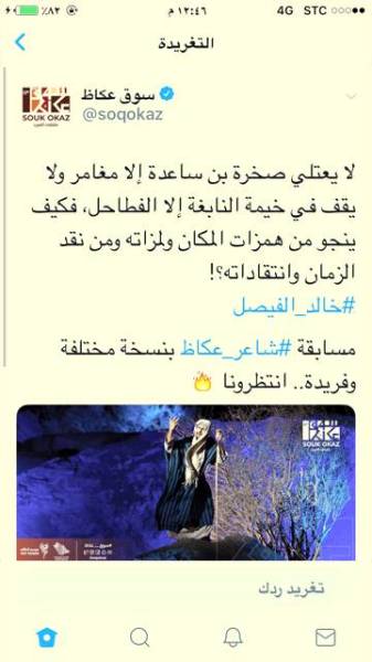 وأشارت الهيئة أمس الأول عبر حساب السوق في تويتر إلى أن مسابقة شاعر عكاظ هذا العام ستكون بنسخة مختلفة وفريدة، وتخفّف السوق هذا العام كذلك من لجنته العليا الإشرافية كما في السابق ولم تعقد أي اجتماعات طيلة العام إذ كانت تضم ممثلين من جامعة الطائف والنادي الأدبي والغرفة التجارية ومن التعليم وتقوم حاليا هيئة السياحة والتراث الوطني بكل ما يخص السوق في لمحة تنبئ عن تطوير شامل للسوق في كل اتجاهاته ورغبة السياحة أن يكون مختلفا وفريدا.
