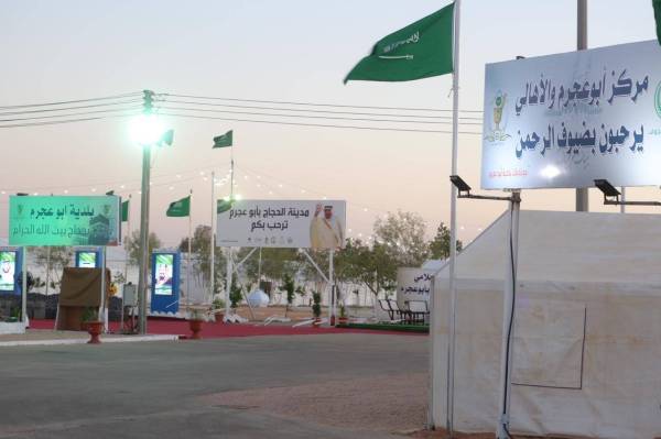 كما تم تجهيز مخيمات للإدارات الخدمية المشاركة، وتجهيز طرق معبدة، وغرس الأشجار لترطيب الأجواء، وتركيب أعمدة الإنارة، وتركيب كشافات وفوانيس، وتنفيذ شبكة رذاذ للماء بمساحة 10 آلاف متر مربع، وتركيب مكيفات في المخيمات، إضافة إلى وضع اللوحات الترحيبة والأعلام السعودية، كما تم تمديد شبكة المياه بمدينة الحجاج بأبو عجرم، وإضافة مولدات وعدادات كهربائية.