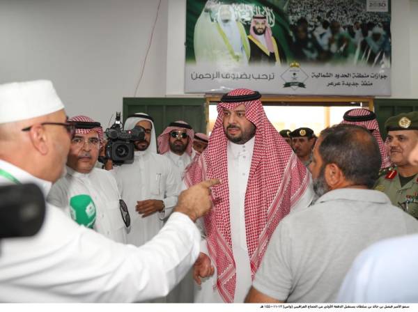 حظي الفوج الأول من حجاج العراق (1880 حاجا) بأن يكون أول من استقبلهم أمير منطقة الحدود الشمالية الأمير فيصل بن خالد بن سلطان، أمس (الثلاثاء) في منفذ جديدة عرعر الحدودي، إذ رحب بهم سائلا الله أن يتقبل حجهم، ويكتمل وصول 24 ألف حاج الأيام القادمة.