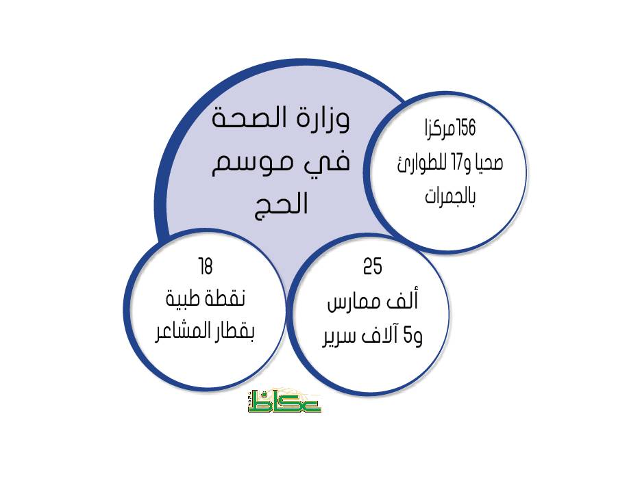 جهزت وزارة الصحة بمكة المكرمة والمدينة المنورة والمشاعر المقدسة لموسم الحج 25 مستشفى، و156 مراكزا صحيا، و25 ألف ممارس صحي، و5 آلاف سرير للتنويم بالمستشفيات، و18 نقطة طبية في قطار المشاعر، و180 سيارة إسعاف، و17 مركز طوارئ على جسر الجمرات.