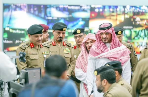 بعد ذلك زار مركز عمليات المسجد الحرام، واطلع على أحدث تقنيات المركز، مستمعاً لشرح عن دوره في متابعة أمن وسلامة ضيوف الرحمن ومعالجة كل ما يتم رصده من ملاحظات، والتنسيق مع القيادات المساندة بساحات الحرم ومنشأة الجمرات والطرق التي تربط بينهما لتنظيم تدفق الحجاج بعد رمي الجمرات باتجاه الحرم.