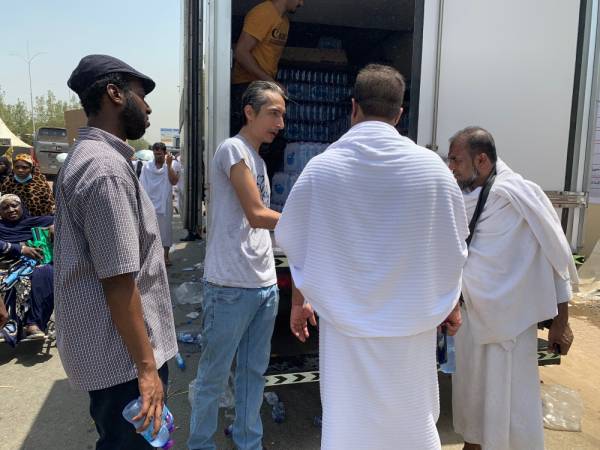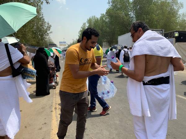 من جانبه، يقول معاذ صالح عبدالله إنه قدم من المدينة المنورة رفقة عدد من أفراد عائلته لتوزيع المياه في يوم عرفة احتسابا للأجر ويقومون كعائلة بهذا العمل سنويا.