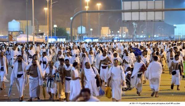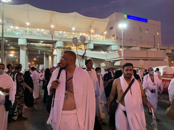 مشهد مهيب والجموع المليونية تسلك مسارات المشاة التي اكتست ببياض الإحرامات، في ثالث محطة في رحلة الحج.