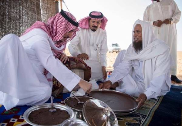 وخلال الفيديو، تناول الأمير فيصل بن نواف العصيدة، وهي إحدى الأكلات الشعبية الشهيرة في المنطقة.