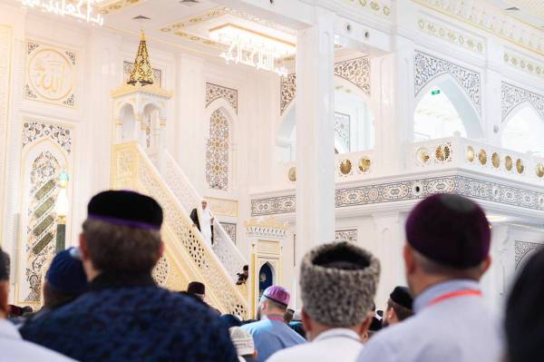 كما أشاد العيسى في الخطبة بحضور الرئيس الشيشاني مؤتمر وثيقة مكة المكرمة تحت رعاية خادم الحرمين الشريفين الملك سلمان بن عبدالعزيز في رمضان الماضي، التي صادق عليها أكثر من ١٢٠٠ مفتٍ وعالم اجتمعوا عليها في رحاب مرجعية الأمة الإسلامية حيث القبلة الجامعة مكة المكرمة.
