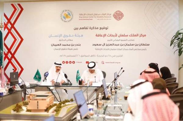 وقال الأمير سلطان بن سلمان في تصريح صحافي عقب توقيع مذكرة التفاهم المشتركة بين المركز وهيئة حقوق الإنسان، التي وقعها سموه ورئيس هيئة حقوق الإنسان الدكتور بندر بن محمد العيبان، " إن توقيع هذه الاتفاقية يأتي تتويجًا لسنوات من الشراكة الفاعلة والمثمرة بين مركز الملك سلمان لأبحاث الإعاقة وهيئة حقوق الإنسان، وهذه المذكرة تهدف إلى التنسيق والتعاون المشترك بين هيئة حقوق الإنسان والمركز في ضوء اختصاصات كل طرف؛ لتعزيز وحماية حقوق الأشخاص ذوي الإعاقة وبلوغ أفضل المستويات في هذا المجال، بما في ذلك الإسهام في مراجعة وتطوير الأنظمة واللوائح والإجراءات ذات الصلة بحقوق الأشخاص ذوي الإعاقة وَفْقًا للإجراءات النظامية" .