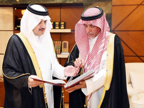 الأمير سعود بن نايف مطلعا على تقرير المالية. (عكاظ)