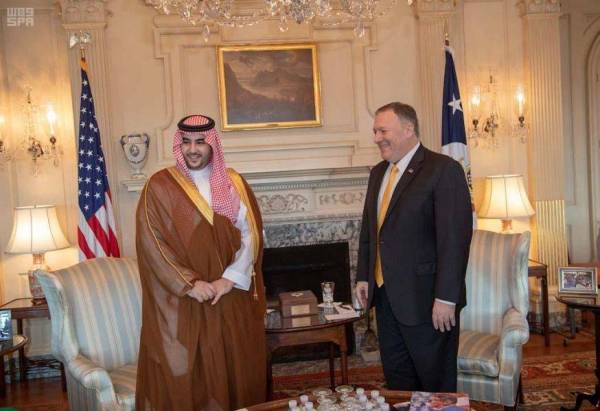 خالد بن سلمان يناقش أنشطة إيران المزعزعة للاستقرار مع بومبيو