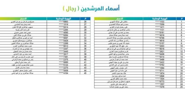 أعلنت المديرية العامة للدفاع المدني اليوم (الأحد)، أسماء المرشحين والمرشحات مبدئياً لشغل الوظائف الإدارية المُعلن عنها بتاريخ 17 ذي الحجة.