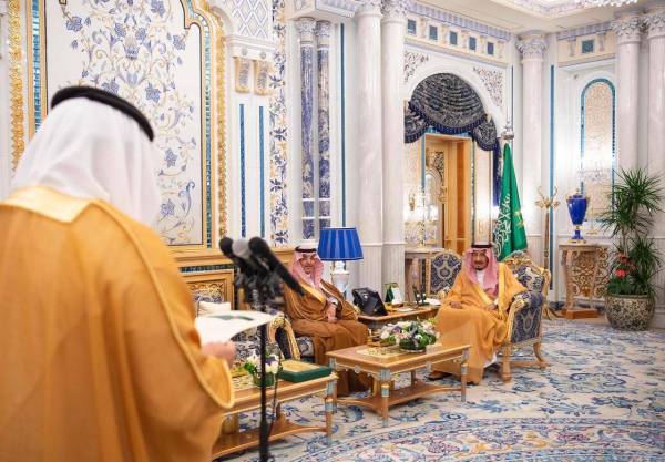 حضر الاستقبال، وزير الداخلية الأمير عبدالعزيز بن سعود بن نايف بن عبدالعزيز، ووزير الخارجية الدكتور إبراهيم بن عبدالعزيز العساف، ومساعد السكرتير الخاص لخادم الحرمين الشريفين تميم بن عبدالعزيز السالم.