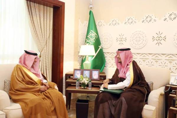 الأمير أحمد بن فهد خلال استقباله مدير فرع وزارة المالية بالمنطقة.