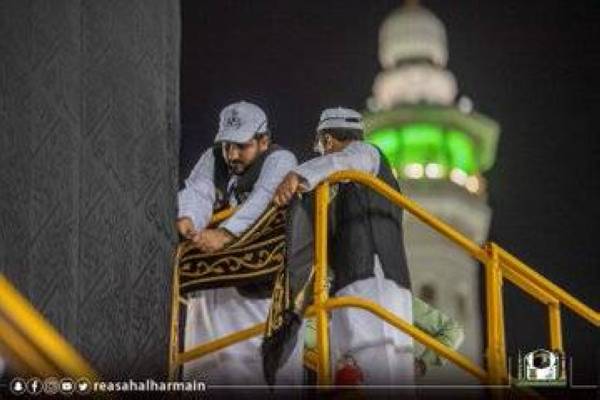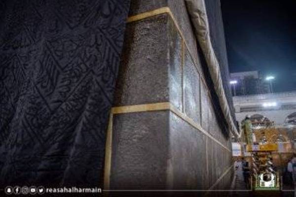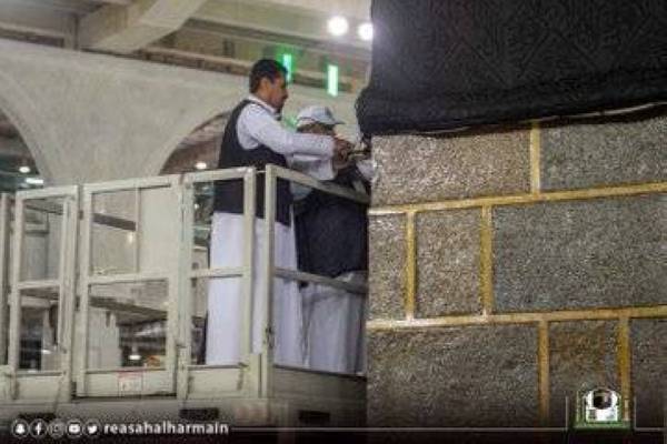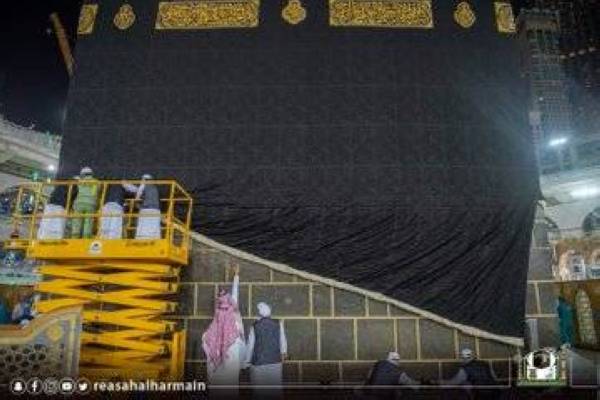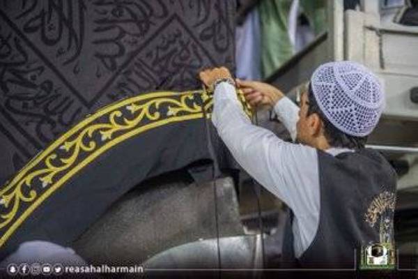 باشرت الرئاسة العامة لشؤون المسجد الحرام والمسجد النبوي ممثلة في مجمع الملك عبدالعزيز لكسوة الكعبة المشرفة أمس، إسدال ثوب الكعبة المشرفة وتثبيته بحلقات الشاذروان المذهبة بإشراف وتوجيه ودعم معالي الرئيس العام لشؤون المسجد الحرام والمسجد النبوي الشيخ الدكتور عبدالرحمن بن عبدالعزيز السديس، وبمتابعة وكيل الرئيس العام لشؤون المسجد الحرام أحمد بن محمد المنصوري.