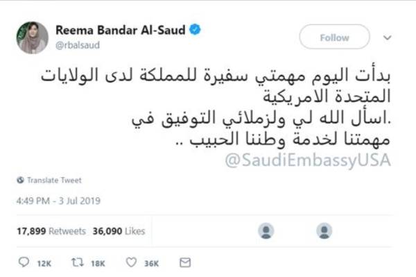 وتصدر الأمر الملكي بتعيين الأميرة ريما بنت بندر آل سعود سفيرة للمملكة العربية السعودية لدى الولايات المتحدة الأمريكية تغريدات نساء حققن إنجازات ملحوظة على مدار العام الماضي، كانت الأكثر إعادة لديها على تويتر حتى الآن.