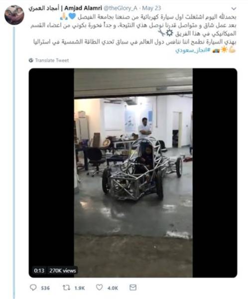 ومن ضمن التغريدات الأكثر إعادة، أمجاد العمري في جامعة فيصل بعد كشفها سيارتها الكهربائية الجديدة بالكامل.