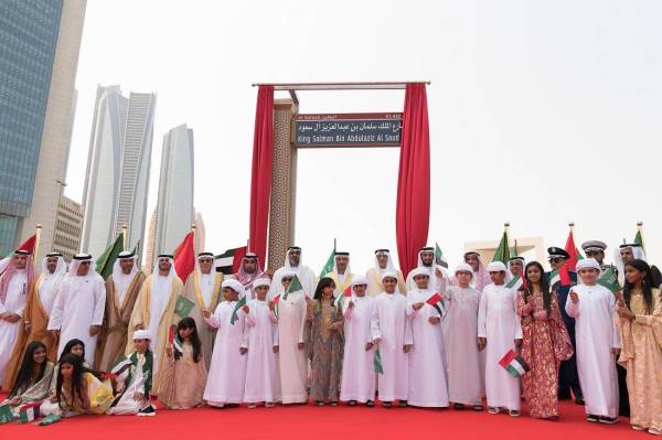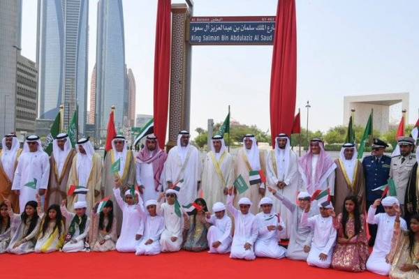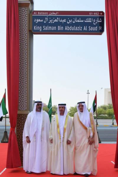 بتوجيهات رئيس دولة الإمارات العربية المتحدة الشيخ خليفة بن زايد آل نهيان وتكريما وتقديرا لإنجازات خادم الحرمين الشريفين الملك سلمان بن عبدالعزيز آل سعود، أمر ولي عهد أبوظبي نائب القائد الأعلى للقوات المسلحة الشيخ محمد بن زايد آل نهيان، بإطلاق اسم خادم الحرمين الشريفين على أحد الشوارع الرئيسة في العاصمة أبوظبي.