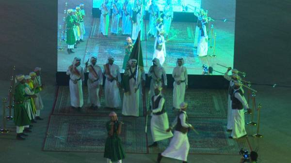 واشتمل هذا الاحتفال على عرض عسكري شارك فيه كتلة عسكرية من الجانب الباكستاني الصديق، انتهى بتشكيل المتدربين بأجسادهم لرقم 89، كذلك تخلّل الاحتفال عرض مرئي عن ملوك المملكة منذ بداية توحيدها على يد الملك المؤسس، ووصولاً إلى العهد الزاهر الميمون عهد خادم الحرمين الشريفين الملك سلمان بن عبدالعزيز. عقب ذلك أوبريت غنائي قام بأدائه فرقة للفنون الشعبية، وانتهت فقرات الحفل بالعرضة السعودية لما لها أهمية بالغة بتراث المملكة.