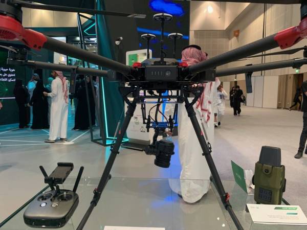 وتظهر الطائرة من دون طيار محاطة بالدروع المضادة لها وكذلك جهاز قاطع الإشارة، وتستخدم الأجهزة الأمنية بالمملكة تلك الطائرة المزودة بكاميرات للقيام بعملية المسح الأمني للمواقع الحساسة والأمنية.